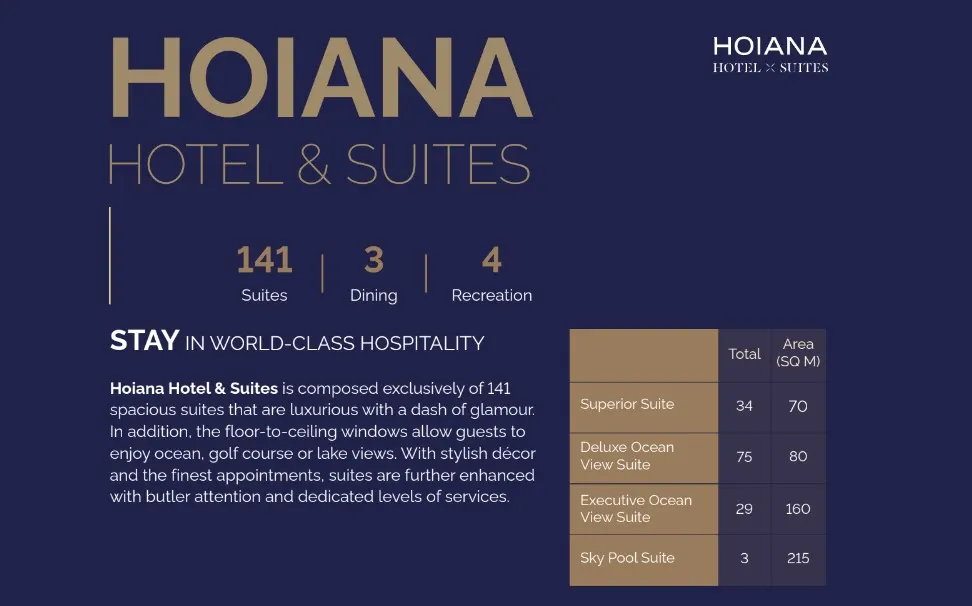Awarded Asia’s Leading Fully Integrated Resort 2024, Hoiana stands out for its seamless blend of elegance, sophistication, and the tranquil charm of Vietnam’s central coastline. Whether you’re indulging in spa treatments, enjoying fine dining, or golfing on the stunning 18-hole championship course, Hoiana promises a perfect balance between luxury and nature, making it the ultimate destination for a premier beachfront getaway.