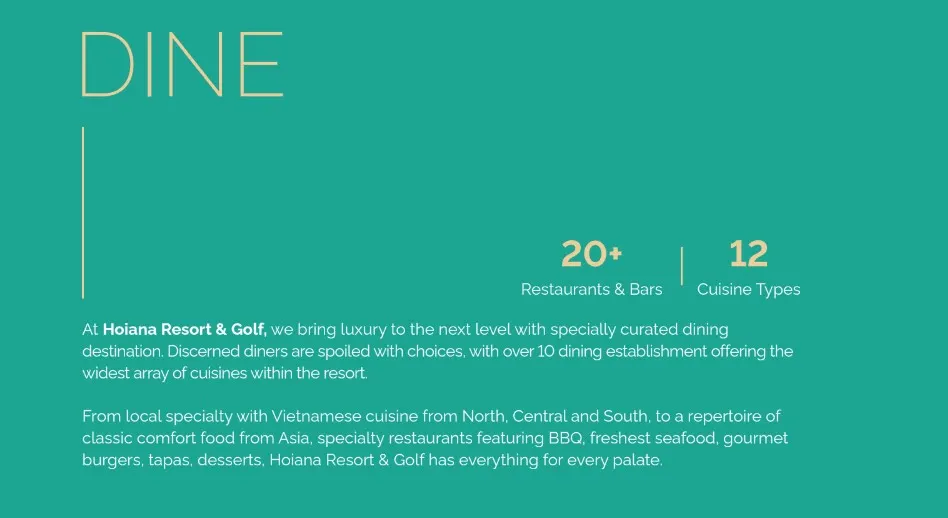 Discounts at Selected Hoiana Resort’s Restaurants, Hotels, and Golf10%10%15% 20%