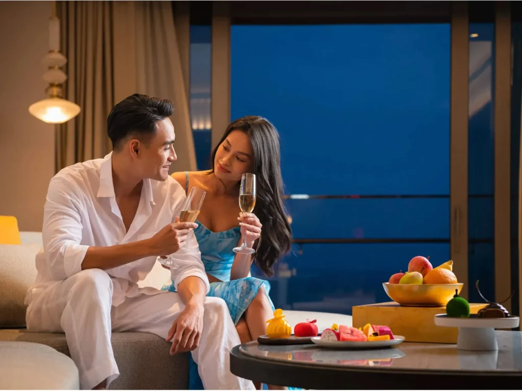 For dining, couples can enjoy a romantic riverside meal at the on-site restaurant, which serves a variety of Vietnamese and global cuisines. This combination of cultural experiences and intimate moments creates an unforgettable honeymoon experience.