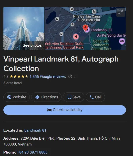 - Address: 720A Dien Bien Phu Street, Ward 22, Binh Thanh District, Ho Chi Minh City (within Landmark 81)