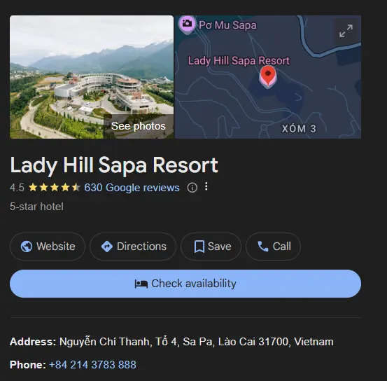 | Lady Hill Sapa Resort – Sa Pa | Mountain & Forest View | 29 Muong Hoa, Sa Pa Town, Sa Pa District, Lao Cai Province | $112 – $260 |