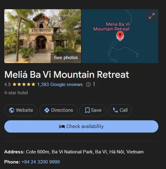 | Melia Ba Vì Mountain Retreat – Ba Vì | Mountain & Forest View | Ba Vì National Park, Ba Vì District, Hanoi | $140 – $320 |