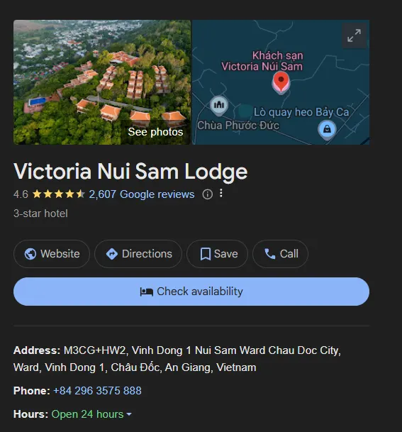 | Victoria Núi Sam Lodge – An Giang | Mountain & Delta View | Vinh Dong 1 Quarter, Nui Sam Ward, Chau Doc City, An Giang Province | $88 – $180 |