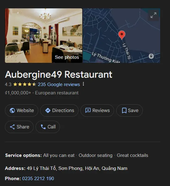 If you’re seeking a sophisticated expat dining in Hoi An experience or simply wish to savor the best western food in Hoi An under an elegant setting, Aubergine49 is the perfect culinary escape.