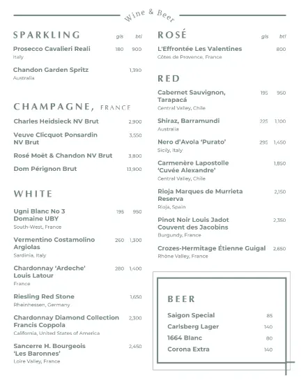 라 센 레스토랑은 베트남과 프랑스 스타일이 조화를 이루는 곳입니다. 낮에는 지역 농장에서 직접 공급받은 신선한 재료로 만든 가벼운 프랑스식 요리를 제공하며, 저녁에는 정통 베트남 요리를 럭셔리한 해변 레스토랑 분위기에서 즐길 수 있습니다.