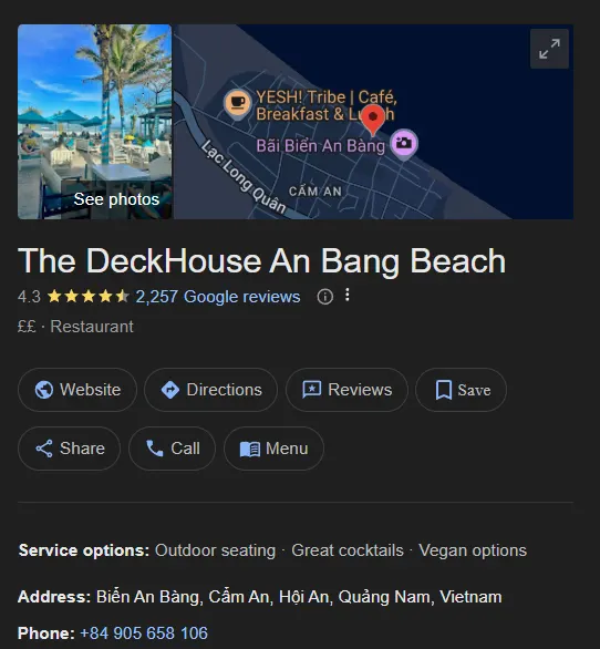 - 주소: Lot 8B, An Bang Beach, Cam An, Hoi An, Quang Nam