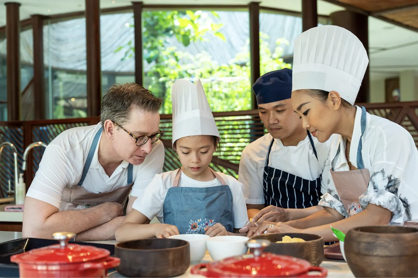 어린이들은 전통 공예나 요리 수업과 같은 문화 활동에 참여할 수 있어, 지역 문화와의 깊은 연결을 느낄 수 있습니다. 부모님은 하트 오브 더 어스 스파에서 베트남의 유명한 선사이자 스님인 틱낫한의 영향을 받은 웰니스 트리트먼트를 받으며 휴식을 취할 수 있습니다.