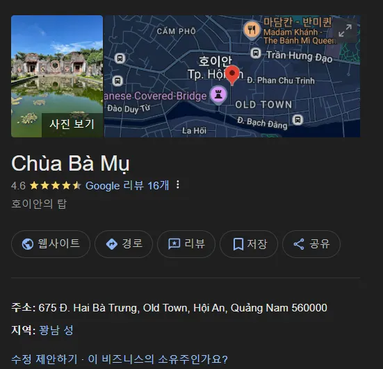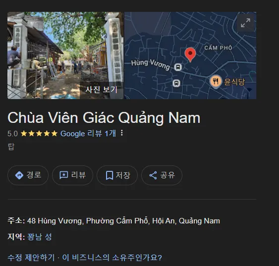 - 주소: 베트남, 꽝남성, 호이안, 땀꽌, 하이바쯩 7