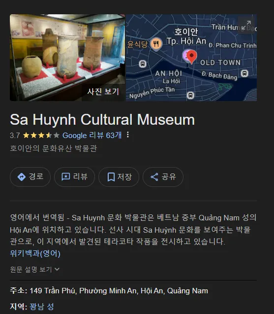 사후인 문화 박물관을 둘러본 후, 호이안의 역사를 더욱 깊이 탐구하고 싶다면 다른 박물관들도 함께 방문해보세요. 각 박물관은 호이안이 걸어온 길과 이곳에서 이루어진 문화적 교류의 흔적을 다양한 관점에서 조명하여 보다 폭넓은 이해를 제공합니다.