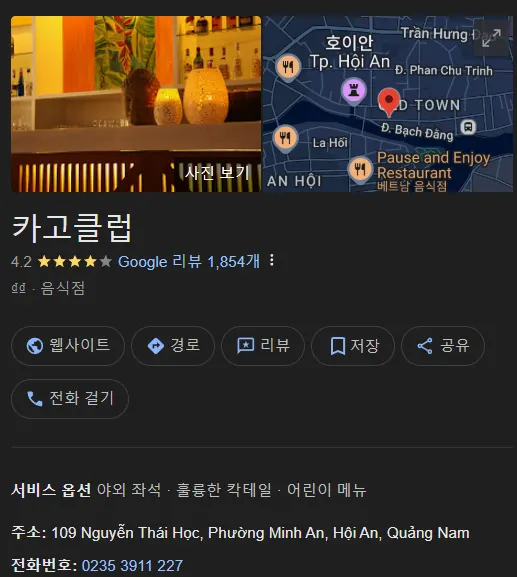 - 주소: 베트남, 호이안, 민안동, 응우옌 타이 혹 109