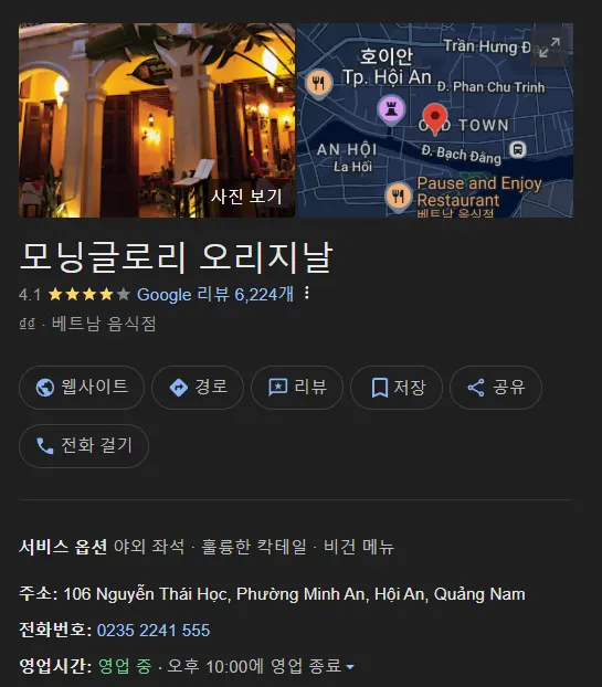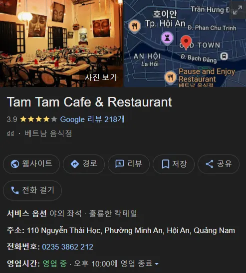 - 주소: 베트남, 호이안, 민안동, 응우옌 타이 혹 106