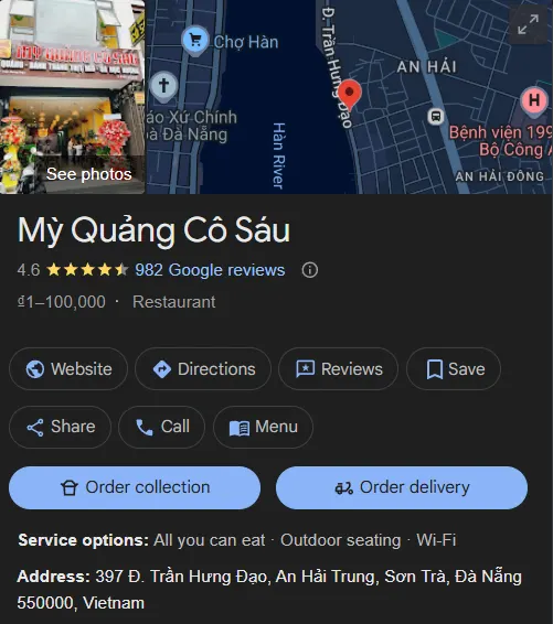 사우 여사의 국수 식당 하이라이트는 약간 매콤한 특제 생선 소스를 알맞게 섞어 국수 한 그릇에 풍미를 더하는 것입니다. 수십년 이상의 경험을 바탕으로 안정적인 품질을 제공하고 있어 항상 손님들로 붐비고 있습니다. 이곳에 오는 손님들은 인내심을 갖고 기다려야 하지만, 호이안 고대 도시 중심부에서 맛있고 풍미 가득한 꽝 국수 한 그릇을 즐기고자 한다면 충분히 기다려서 먹을 가치가 있습니다.