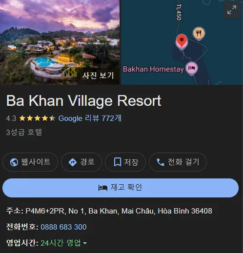 - 주소: No 1, Ba Khan, Mai Chau, Hoa Binh