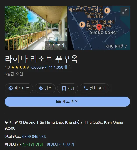 - 주소: Tran Hung Dao, Quarter 7, Phu Quoc, Kien Giang