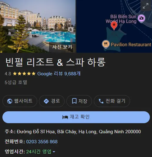 - 주소: 베트남, 꽝닌성, 하롱시, 바이짜이, 레우섬