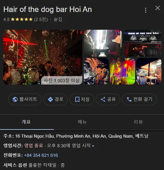 조용한 호이안의 풍경이 잠시 지루하게 느껴진다면, 헤어 오브 더 도그 바 호이안(Hair Of The Dog Bar Hội An)에서 열정적인 밤을 보내보세요. 트렌디한 분위기와 화려한 조명, 강렬한 EDM과 힙합 음악이 어우러진 이곳은 파티를 사랑하는 이들에게 큰 인기를 끌고 있습니다.