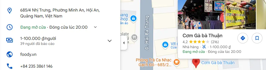 Cơm gà Bà Thuận Hội An – 685/4 Nhị Trưng