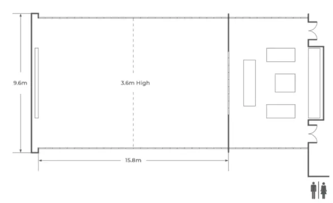 Với diện tích 157 mét vuông và chiều cao trần 3.6 mét, nằm giữa khu vườn xanh mát, sức chứa lên đến 96 khách cho tiệc bàn tròn hoặc 120 khách cho tiệc đứng tạo cảm giác thư thái và gần gũi với thiên nhiên cùng khu bếp mở riêng biệt, nơi đây phù hợp cho các buổi hội thảo kết hợp tiệc tối, hoặc các buổi giao lưu nhỏ.
