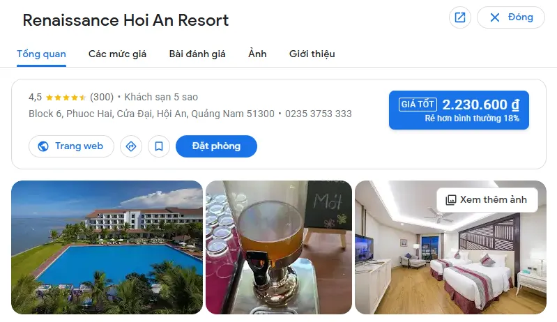 - Google Review: Đạt 4,6/5 sao dựa trên hơn 1.500 đánh giá