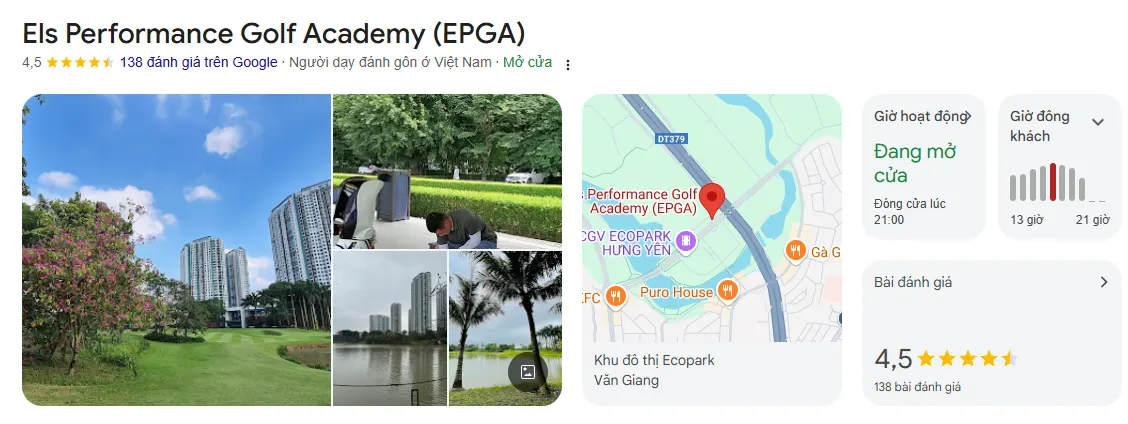 Els Performance Golf Academy (EPGA), tọa lạc tại Ecopark, được biết đến là học viện golf đầu tiên tại Việt Nam mang tên huyền thoại Ernie Els. Đây cũng là Trung tâm Huấn luyện Golf Quốc gia, được Tổng cục Thể dục Thể thao và Hiệp hội Golf Việt Nam lựa chọn để đào tạo Đội tuyển Golf Quốc gia. Với trang thiết bị hiện đại hàng đầu, EPGA cung cấp môi trường luyện tập đẳng cấp quốc tế cho các học viên, từ cơ bản đến nâng cao.