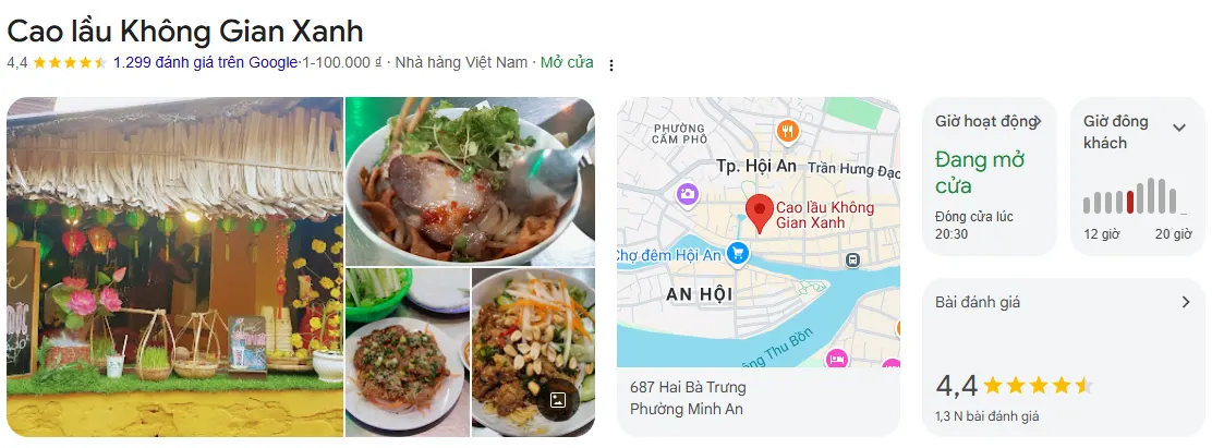 Quán Mì Quảng Không Gian Xanh đúng như tên gọi, mang đến cho thực khách một không gian thoáng mát, rộng rãi với nhiều cây xanh, tạo cảm giác dễ chịu giữa lòng phố cổ Hội An. Đây là quán ăn ngon Hội An quen thuộc cho những ai muốn thưởng thức mì Quảng chất lượng với giá cả phải chăng, thu hút đông đảo khách du lịch lẫn người dân địa phương.