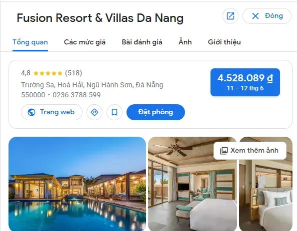 - Số điện thoại: +84 235 858 6999 (liên hệ qua website chính thức để đặt phòng).