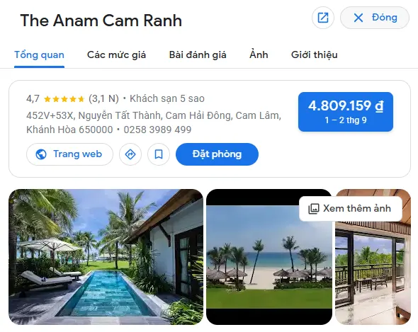 | The Anam Cam Ranh – Khánh Hòa | Thành phố | Đường Nguyễn Tất Thành, Bãi Dài, phường Cam Hải Đông, thành phố Cam Ranh, tỉnh Khánh Hòa | 5.000.000 – 12.000.000 |