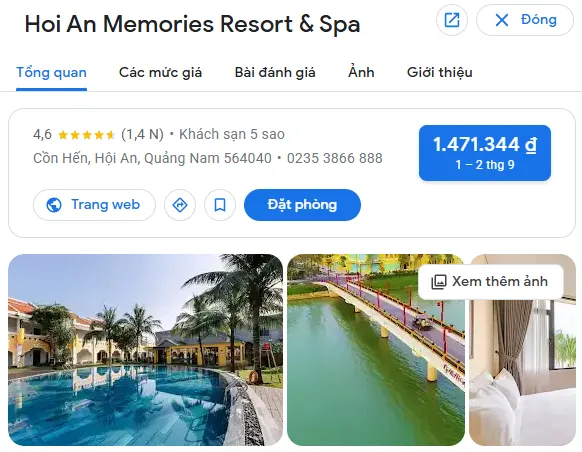 | Hoi An Memories Resort & Spa – Hội An | Thành phố | Tổ 6, khối Phước Hải, phường Cửa Đại, thành phố Hội An, tỉnh Quảng Nam | 2.800.000 – 6.000.000 |