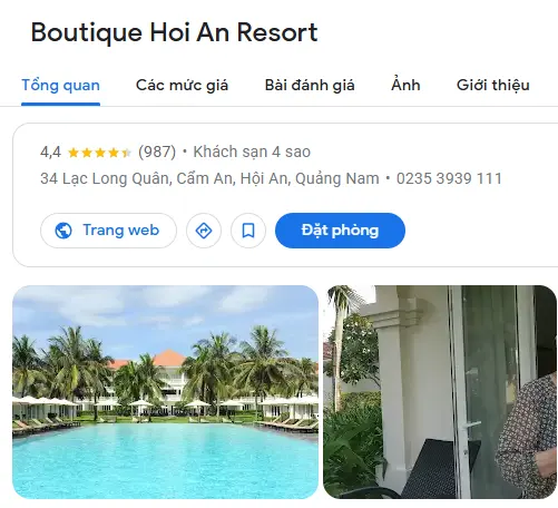| Boutique Hoi An Resort | 34 Lạc Long Quân, Phường Cẩm An, TP. Hội An, Quảng Nam | Từ 3.500.000 VNĐ/đêm |