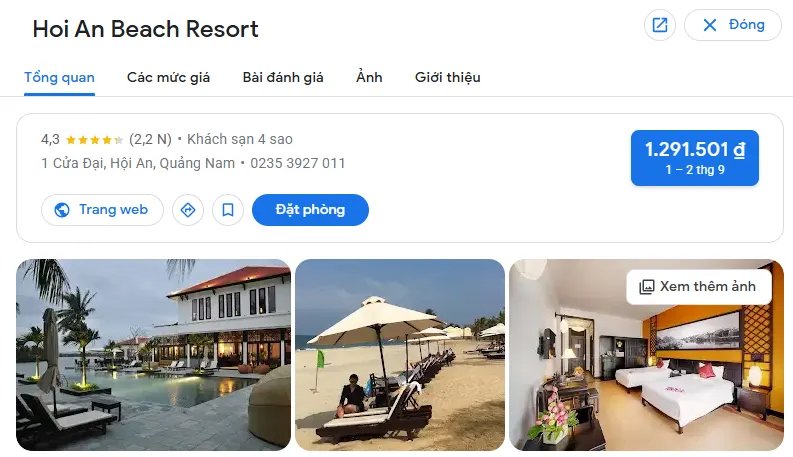 | Hoi An Beach Resort | 1 Cửa Đại, Phường Cẩm Châu, TP. Hội An, Quảng Nam | Từ 1.500.000 VNĐ/đêm |