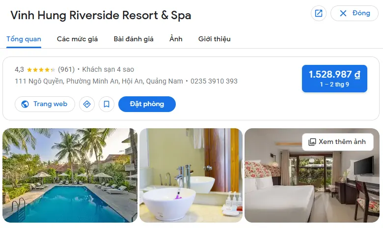 | Vĩnh Hưng Emerald Resort Hội An | 127 Ngô Quyền, Phường Minh An, TP. Hội An, Quảng Nam | Từ 1.300.000 VNĐ/đêm |