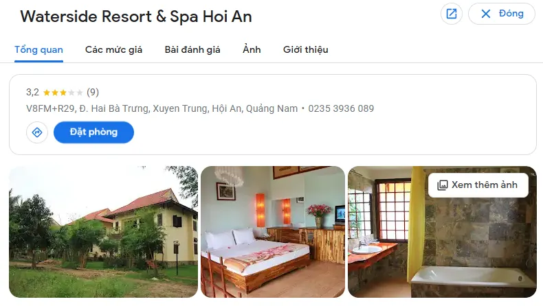 | Waterside Resort Hội An | 90 Nguyễn Phúc Tần, Phường Minh An, TP. Hội An, Quảng Nam | Từ 1.000.000 VNĐ/đêm |